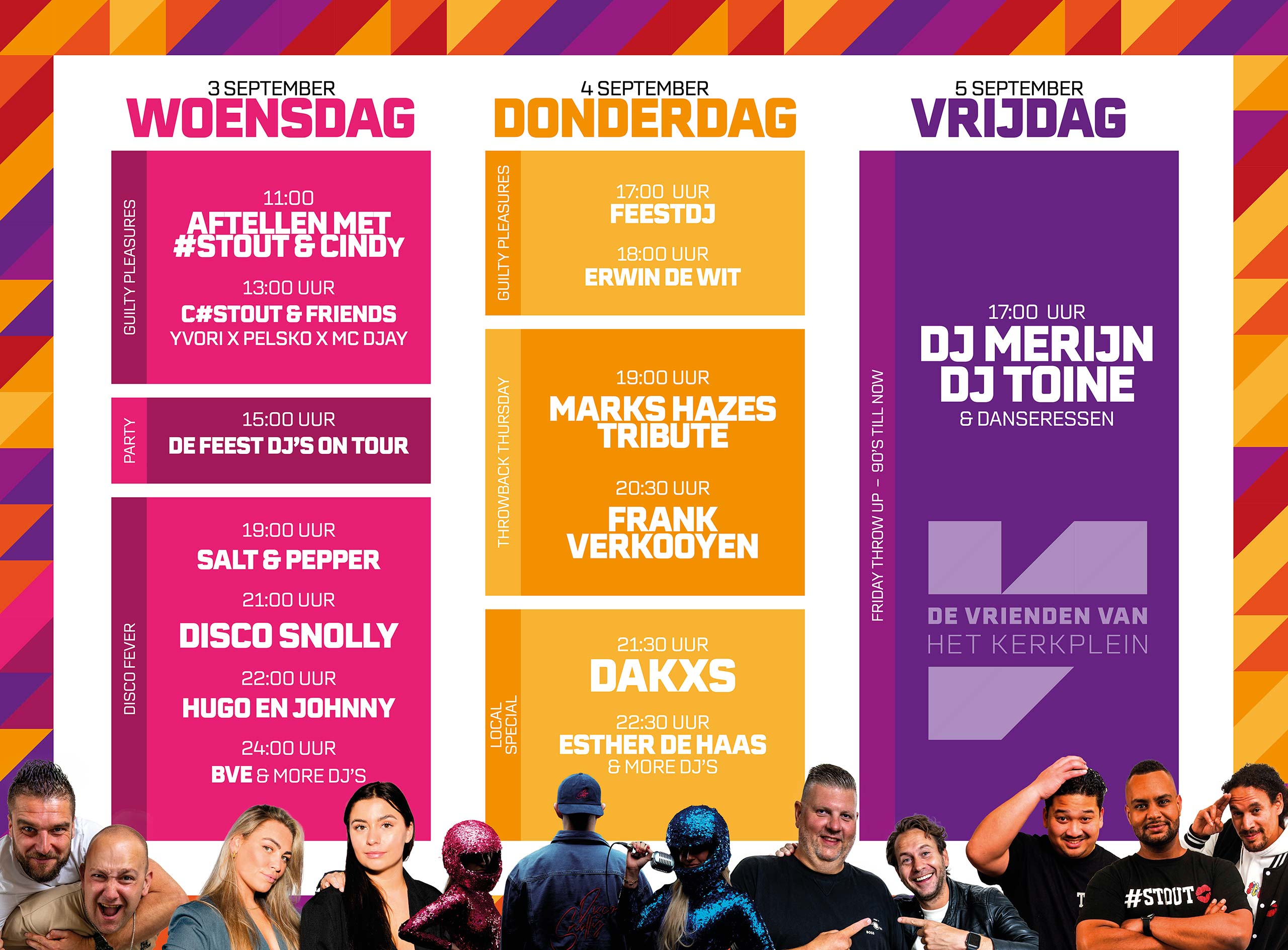 Met een enorme overkapping, een zee van verlichting, te gekke dj’s en verrassende acts die zorgen wij voor een onvergetelijke sfeer. Dus noteer alvast in je agenda: Drie te gekke dagen met gezelligheid en feestvreugde waar iedereen naar uitkijkt!